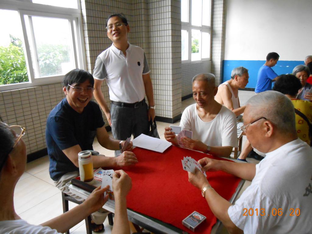 学校老年体育协会,在离退休工作部的关怀和领导下,本着“健康安全娱乐和谐”为宗旨,于2013年6月19日到21日分别在校本部和江北校区举行了趣味性的扑克升级、麻将、象棋、男女乒乓球竞赛活动,有180余人参加。虽然气温很高,热得难受,但是老同志们个个精神饱满、高高兴兴、快快乐乐,劲头很足,情绪很高,喜笑颜开。给这次活动增添精神力量。在这样高热的条件下,离退休工作部赵部长、陈南飞副部长亲临现场关心指导,及时解决问题,老同志很感动,鼓舞了士气,增强了活力,劲头倍增。在老体协全体委员的精心安排和热情无私的努力下,活动顺利地进行,尚未发生事故,受到老同志的好评。