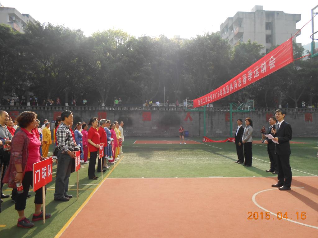 紧接着,离退休工作处处长赵承华宣布:122cc太阳集成游戏2015年离退休同志第十三届春季运动会开幕!
