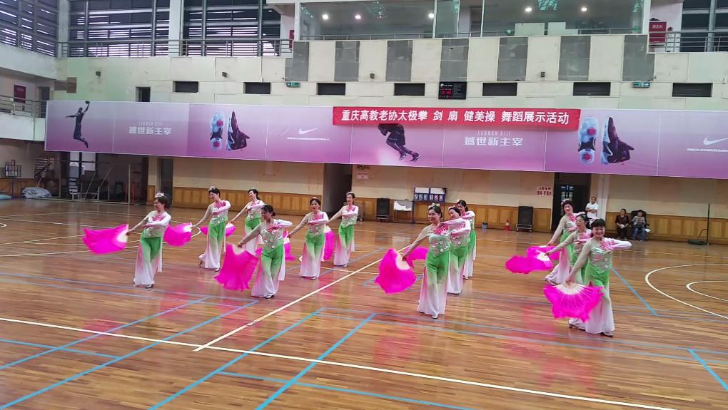我校舞蹈《水之韵》和《祖国,您好!》获得观众好评,特别是《水之韵》令全场耳目一新。笛子、琵琶、丝弦……音乐如水,逶迤流淌,时而泉水叮咚,细流潺潺;时而汪洋恣肆,一泻千里。一群身披霓裳,头戴花冠,手持红扇的“姑娘”们,随着音乐的展开翩翩起舞。时而柔媚秀雅,时而活泼明快,时而热烈奔放。虽是金秋重阳时的山城,却仿佛令人穿越到了阳春时节,桃红柳绿的江南水乡……