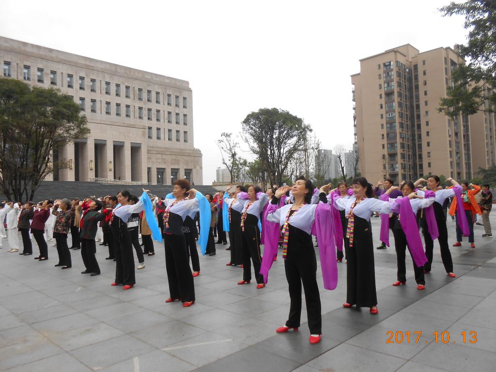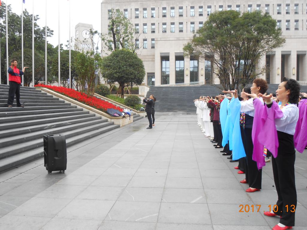 随后,进行了别开生面的开幕式表演。由老体协会员和老年大学学员带来的养生气功《太极二十四式》、广场健身舞《幸福像花儿一样》和舞蹈《青衣缘》随着的音乐鱼贯入场,给活动带来了欢快祥和的气氛。