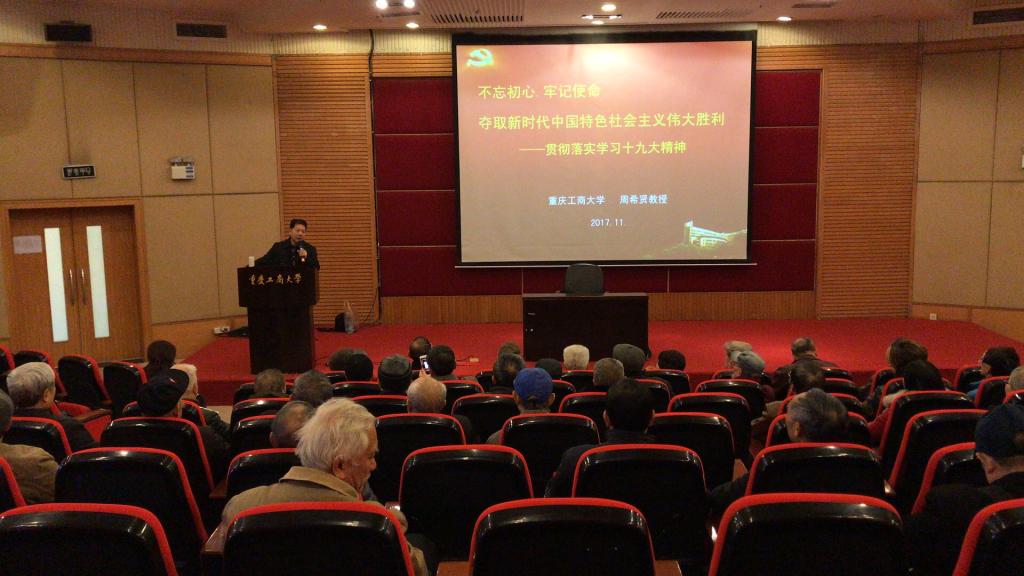 在全国上下掀起学习宣传贯彻党的十九大精神热潮之际,2017年 11月23日上午10:00,离退休党委、离退休工作部(处)在博智楼7200报告厅组织召开了学习宣传贯彻党的十九大精神宣讲报告会,并诚挚邀请了原学校党委书记周希贤教授做了题为《不忘初心、牢记使命,夺取新时代中国特色社会主义伟大胜利——贯彻落实学习十九大精神》的专题宣讲报告。离退休工作部(处)全体工作人员和学校近80名离退休老同志参加了本次宣讲报告会。会议由离退休党委书记、离退休工作部(处)部长赵承华主持。