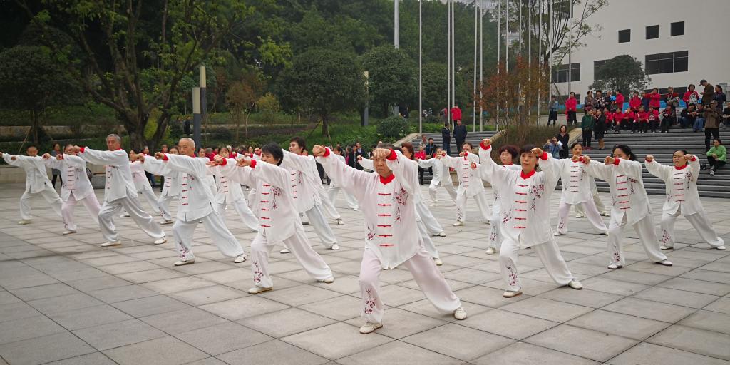 在简短的开幕会后,进行了文艺表演。首先上场的是江北校区老年大学带来的广场舞《万水千山总是情》。她们将舞姿融入音乐,表达出对祖国大好河山的喜爱情感;接着,是南岸校区老年大学表演的三十式武当拳,一招一式尽显老当益壮;最后,由离退休老年舞蹈队带来的健身拉丁舞,在充满旋律的音乐中,刚柔结合的舞姿,尽显老同志们意气风发,青春永驻的魅力。