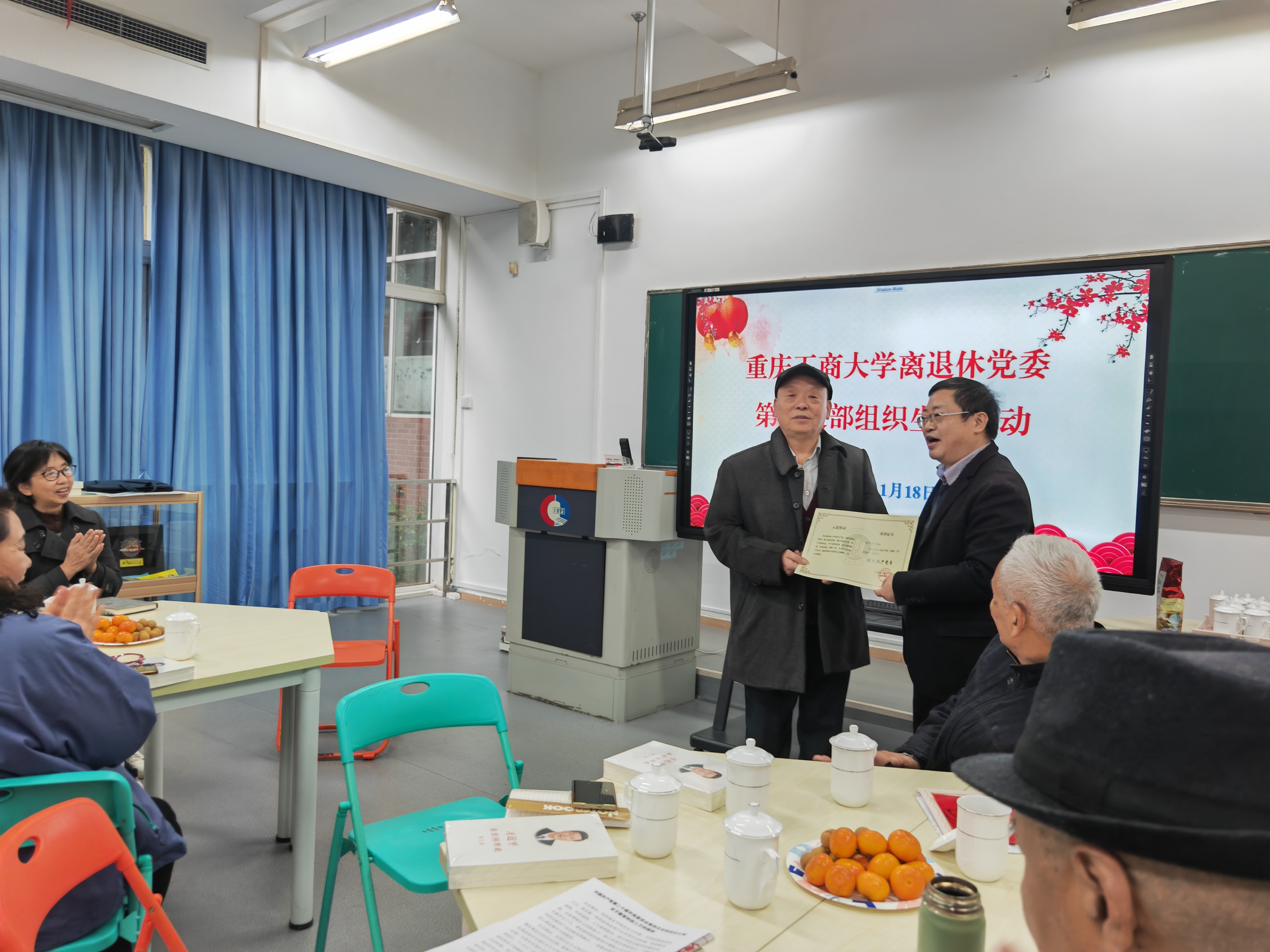 会议为荣获学校和离退休党委2025年优秀党员及党龄满30年党员颁发荣誉证书。