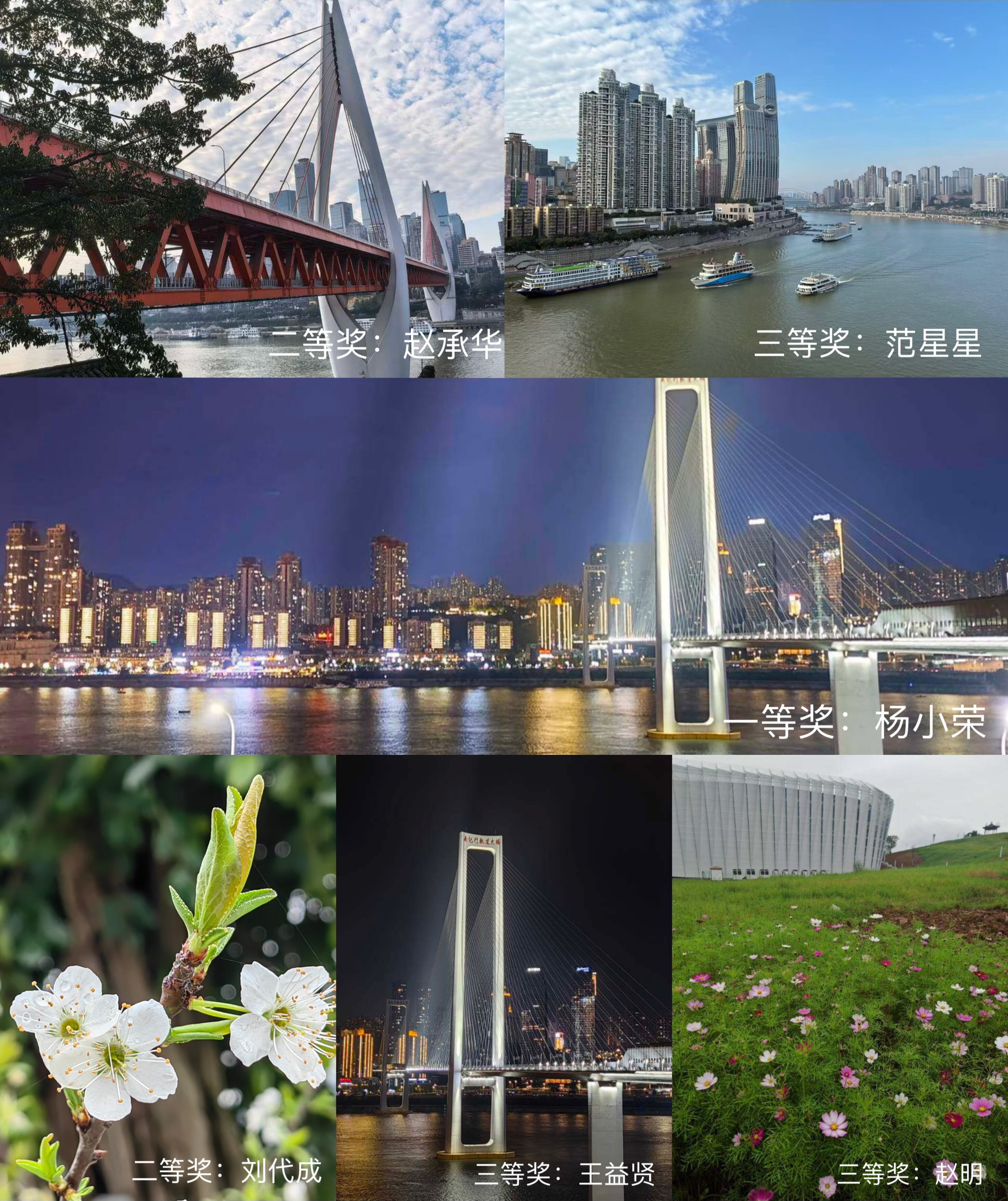 此次大赛得到会员们的积极响应与踊跃参与,参赛作品题材丰富、意境深远。镜头下,既有秋高气爽的自然风光,定格生活里的诗意与美好;也有重庆城市现代化建设的蓬勃图景,记录发展中的奋进与蜕变;更有工会会员们的团队身影,彰显彼此相亲相爱的深厚情谊。作品经艺术学院马说龙老师盲评,最终评选出一等奖1名、二等奖2名、三等奖3名。